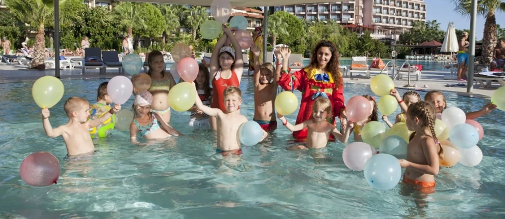 1 відкритий басейн, 1 дитяча водна гірка, міні-зоопарк, дитяча коляска (платно), дитяча анімація (російською мовою), міні-диско, ігрова кімната, ігрова приставка.