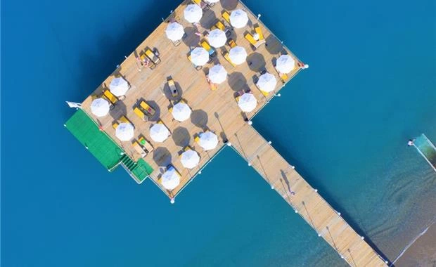 Власний піщано-гальковий пляж. Довжина: 200 м Є платформа і дерев'яний пірс. Між основною будівлею та спорудою Moonlight є автомобільна дорога, є перехід. Пляжні рушники видаються під депозит.