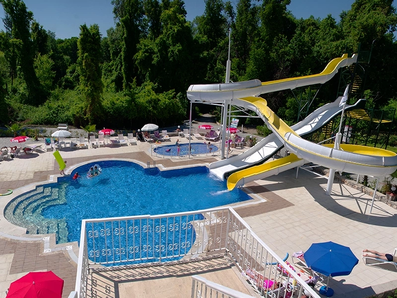 2 водні гірки, безмоторні водні види спорту безкоштовно, моторні водні види спорту платно, бочче безкоштовно, тенісний корт безкоштовно (з бетонним покриттям (вдень), прокат тенісних ракеток і м'ячів безкоштовно, уроки підводного плавання платно, дартс безкоштовно, віндсерфінг безкоштовно (з ліцензією), стрільба з лука безкоштовно, аквааеробіка без