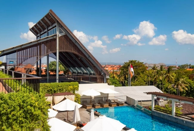 Сучасний 4-зірковий готель One Legian розташований на жвавій вулиці в містечку Легіан курорту Кута. Готель побудований в 2011 році. Він знаходиться в декількох хвилинах ходьби від магазинів і ресторанів, а також всього в 5 хвилинах ходьби від центру з нічними клубами. До послуг гостей відкритий басейн на даху, наземний басейн, ресторан, безкоштовний Wi-Fi на всій території, фітнес-центр. У готелі працює бізнес-центр, а також надаються послуги хімчистки та пральні. Відстань від готелю One Legian Bali до міжнародного аеропорту Нгура-Рай становить 8 км.