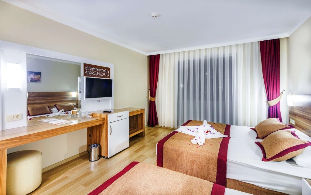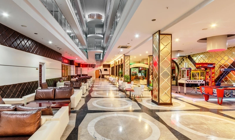 Цілодобова стійка реєстрації гостей, кімната для зберігання багажу, послуги по прасуванню одягу, факс / ксерокопіювання, Wi-Fi (платно), пральня (платно), 1 конференц-зал, 2 ресторани — 1 основний ресторан, 1 a la carte: рибне меню та турецька кухня (платно), 3 бари, магазини, 2 басейни: 1 відкритий басейн з прісною водою (без підігріву), 600 м2, 1
