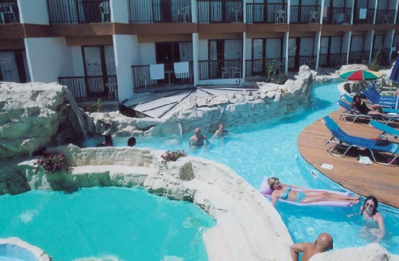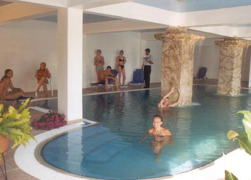 Відкритий басейн площею 180 кв. м, критий басейн з підігрівом в зимовий період площею 60 кв. м, тераса для засмаги, ресторан Adonis, бари George Lounge, бар біля басейну Angelo, бар The Lazy River.