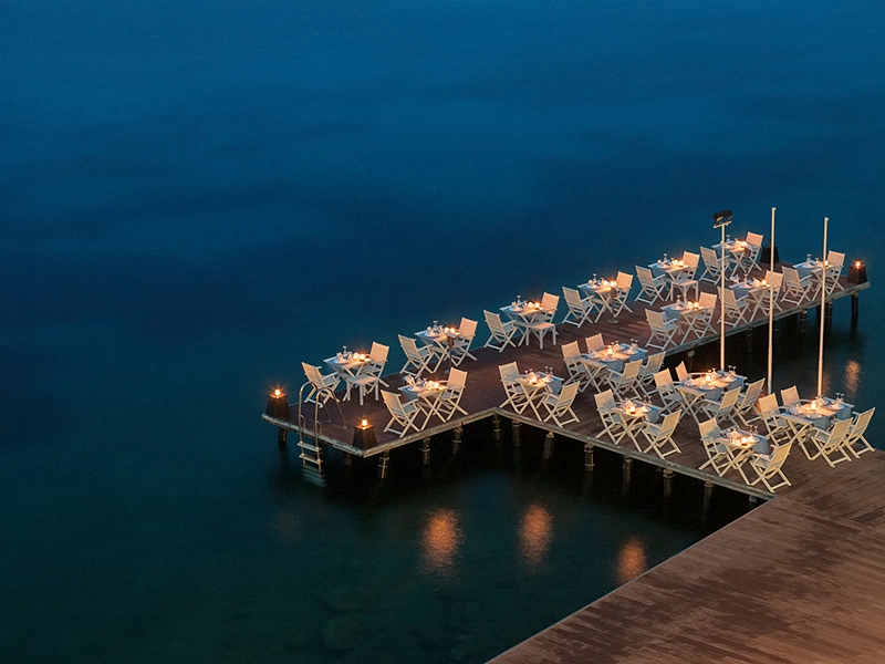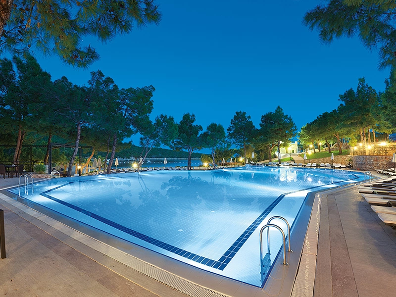 Баскетбол (безкоштовно), стрільба з лука, поле для міні-футболу (безкоштовно), пляжний волейбол (безкоштовно), водні види спорту (платно), 3 тенісних корти з твердим покриттям (освітлення платно, ракетки та м'ячі безкоштовно), хамам (платно), сауна (безкоштовно), масаж (платно), 5 водних гірок, години роботи 10:00-18:00, каное (платно), водні лижі