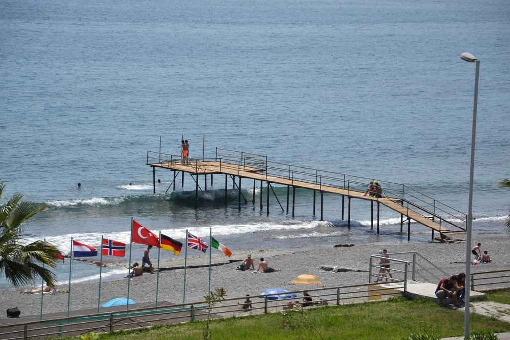 Власний пляж довжиною 100 метрів через дорогу в 20 м (є підземний перехід). Вхід в море – велика галька. На території пляжу є душ і кабіни для переодягання. Протяжність пляжу — 150 м. Пляжні рушники (під депозит).