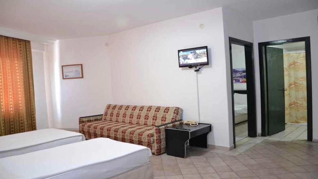 Индивидуальный кондиционер (бесплатно), телевизор, спутниковое ТВ, прямой телефон (платно), сейф (на ресепшн, платно), мини-бар (пустой), ванная комната с душем, фен (бесплатно), большой балкон, дополнительная раскладная кровать (по запросу). Уборка номера: ежедневно, смена белья: 2 раза в неделю, смена полотенец: 2 раза в неделю, room service.