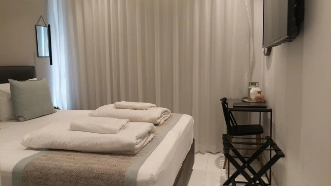 Кондиционер, телевизор с плоским экраном и кабельными каналами, международный телефон (через оператора), сейф, холодильник, электрический чайник, принадлежности для приготовления чая и кофе, ванная комната с душем или ванной, фен, бесплатный Wi-Fi, балкон (не во всех номерах), ежедневная уборка номера.